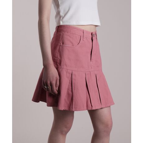 【HOOK】for girls 定番 無地ボックスプリーツミニスカート デニム/コットン