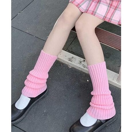 定番のシンプルな無地のリブ編みレッグウォーマー。