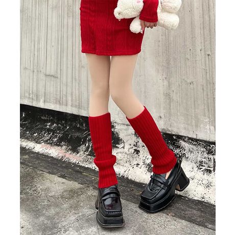 定番のシンプルな無地のリブ編みレッグウォーマー。