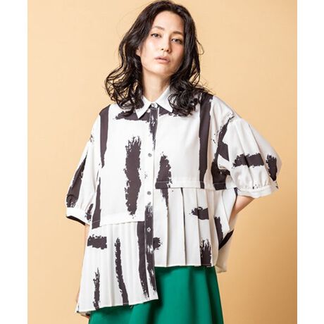 ペイントタッチのプリントでエッジを効かせ、パフスリーブでほのかな女性らしさを忍ばせて。