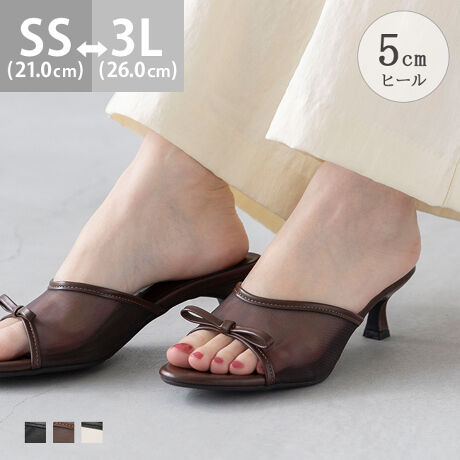 『計算された大人の ラウンドトゥ チュール リボン ミュールサンダル』