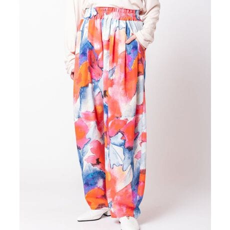 春夏のスタイリングに欠かせないプリントパンツは、水彩タッチなニュアンスが大人っぽいムード。