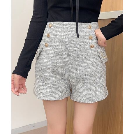 フロントには飾りとしてゴールドボタンをあしらい、華やかさをキープ。