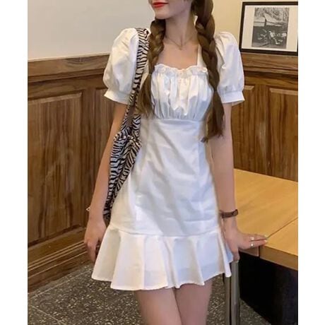 ありそうでない、ミニマーメイドワンピース。 フリルのスクエアネックが 顔周りを可愛くみせます。 足元はパンプスやサンダルと合わせると 気分も上がりそう。 いつもと違うデート、リゾート、バケーションデーや結婚式にもピッタリの あなたの素敵な魅力を引き出してくれるワンピースです。