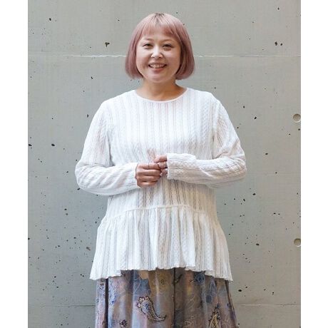 ウエストに切り替えを入れた、表情豊かなカットレースプルオーバー。