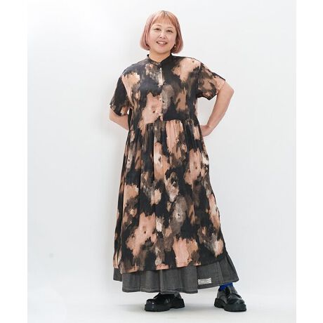 柔らかな風合いと、モヤがかったニュアンスプリントが落ち着きのある雰囲気を演出。