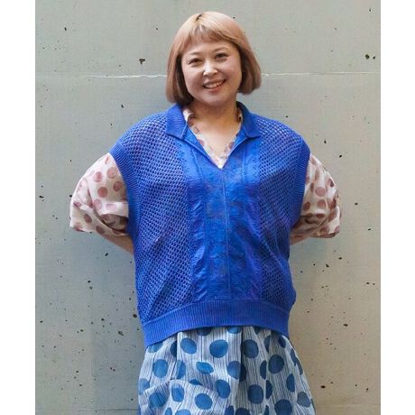 メッシュ編みならではの軽やかな透け感が特徴で、中にカラーインナーを合わせてレイヤードの色遊びを楽しめる一枚です。