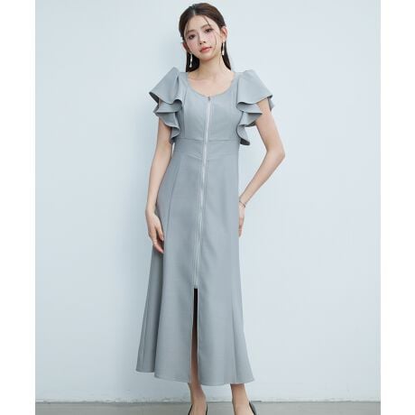 フロントジップがアクセントになったフェミニンロングワンピース。