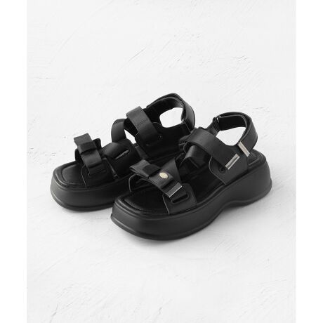 インソールからソールの側面までワントーンでまとめ、光沢感のあるテープやロゴメタルのワンポイントなどカジュアルになり過ぎない綺麗見えにこだわったデザイン。ソールはトレンドの圧底タイプで、抜け感とともにスタイルアップも叶います。中底にはしっかりクッションを入れ、ストラップは足の甲と足首で調節できる仕様にして、足への負担が少なく疲れにくい履き心地に配慮しています。