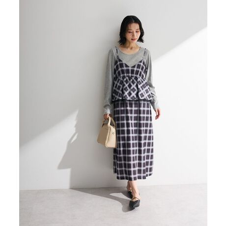 ペプラムチェックキャミワンピース
