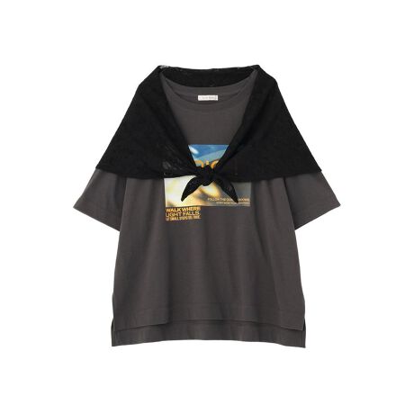 重ねるだけで映える、上品レイヤード。フォトプリントTシャツとレーススカーフがセットになった、着こなしの幅が広がる2点セットです。存在感のあるフォトTシャツは一枚でもサマになり、カジュアルながらも洗練された印象を与えます。繊細なレーススカーフを重ねることで、程よい甘さと上品さが加わり、トレンド感のあるレイヤードスタイルが簡単に完成します。スカーフは首元に巻いたり肩にかけたりとアレンジが可能で、その日の気分やシーンに合わせて表情を変えられます。デニムやスラックス、スカートとも相性が良く、デイリーからお出かけまで万能に活躍します。コーディネートに悩まずおしゃれを楽しめる、実用性の高いセットアイテムです。透け感[なし]
