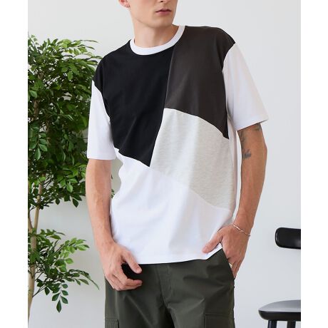 大胆な切り替えデザインが目を惹くデザインTシャツは、1枚でサマになる優れものです。