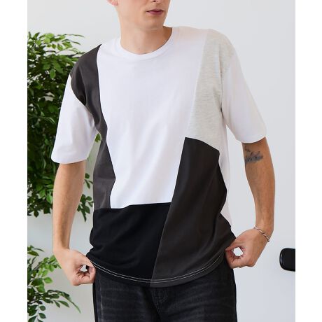 大胆な切り替えデザインが目を惹くデザインTシャツは、1枚でサマになる優れものです。