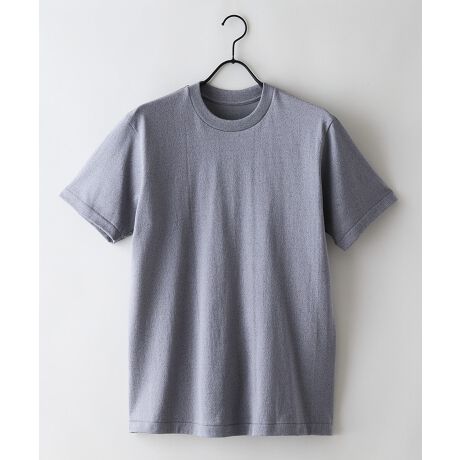 さらに2種類の先染め糸の一部に独自の特殊加工をし、綿100%の吸水性は担保しながら、水分の吸収率を半減させて水分を生地上で拡散させることで、夏でも汗染みの目立ちにくいグレーTシャツを実現しました。