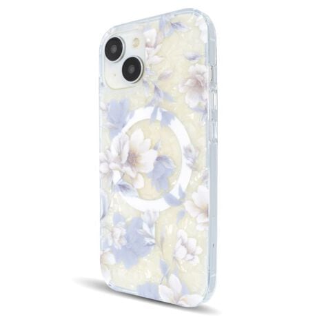 透明感のあるシェルの上に花柄プリントを重ね、iPhone本体のお色ともマッチするようにやさしく浮かび上がるようなデザインとなっています。