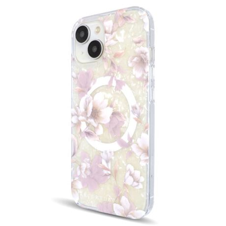 透明感のあるシェルの上に花柄プリントを重ね、iPhone本体のお色ともマッチするようにやさしく浮かび上がるようなデザインとなっています。