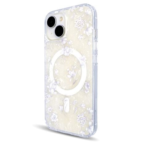 透明感のあるシェルの上に花柄プリントを重ね、iPhone本体のお色ともマッチするようにやさしく浮かび上がるようなデザインとなっています。
