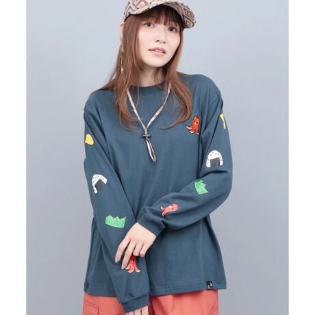 袖にお弁当の具材たちをライン状にあしらった遊び心満点のロングスリーブTシャツ。