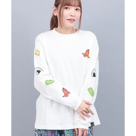 袖にお弁当の具材たちをライン状にあしらった遊び心満点のロングスリーブTシャツ。