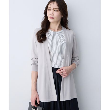 [型番:352690]さらっと羽織れる、軽やかシルエットボタンレスで気軽に羽織れる着流しデザインのカーディガン。すっきりとした縦ラインが、スタイリングを上品にまとめます。軽やかな素材感で、季節の変わり目にも活躍する一枚。パンツスタイルで大人カジュアルに、ワンピースに羽織ってきれいめにもおすすめです。