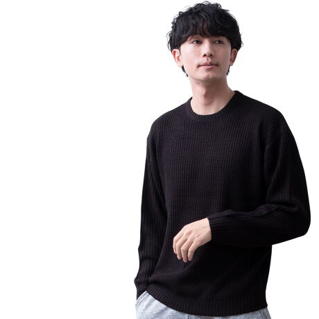 商品名:ニット メンズ 畦編み セーター 暖かい クルーネック 秋冬 メンズニット 長袖 アゼアミ