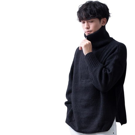 商品名:ニット メンズ タートルネック ハーフジップ モヘアタッチ ハーフZIP 秋冬 暖かい セーター