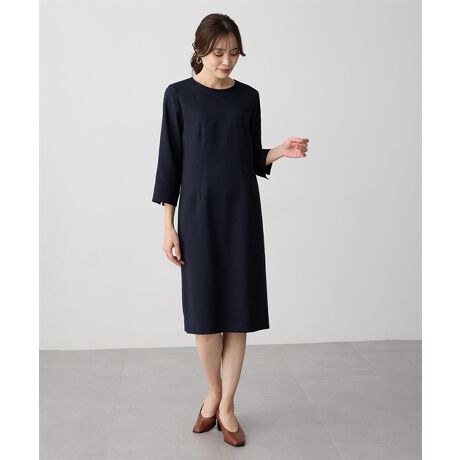 すとんと落ちるシルエットが体のラインを拾いにくく、上品な印象に。