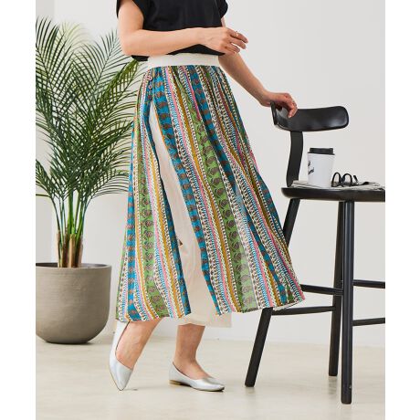 ◆C-FORT POINT/フォートポイント インド綿 総柄パンツスカート 2026SS 春夏◆