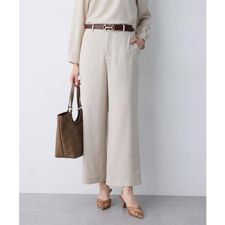 [型番:354135]まっすぐ美しく、軽やかな一本落ち感のあるストレッチジョーゼット素材を使用したストレートパンツ。伸縮性があり、きれいめな印象ながら動きやすさも兼ね備えたデザイン。ウエストは後ろゴム仕様で快適なはき心地。ブラウスやジャケットと合わせて通勤スタイルに、ニットやカットソーで大人カジュアルにも活躍します。