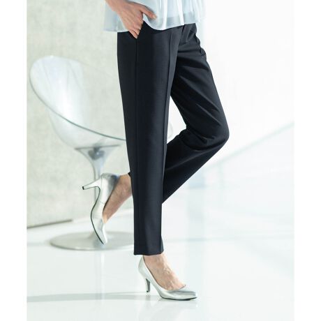 [型番:354139]動きやすく、すっきり美脚通勤もお出かけも心地よく過ごせるテーパードパンツ。生地には程よいハリ感があり、上品な印象と快適なはき心地を両立します。後ろウエストゴム仕様で、長時間の着用も快適。ブラウスを合わせてオフィススタイルに、ニットやカットソーで大人カジュアルにも活躍します。