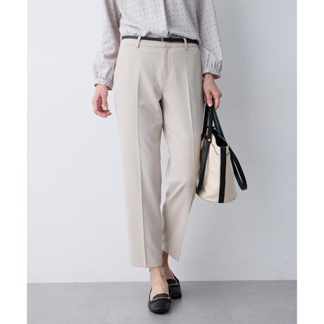 [型番:354139]動きやすく、すっきり美脚通勤もお出かけも心地よく過ごせるテーパードパンツ。生地には程よいハリ感があり、上品な印象と快適なはき心地を両立します。後ろウエストゴム仕様で、長時間の着用も快適。ブラウスを合わせてオフィススタイルに、ニットやカットソーで大人カジュアルにも活躍します。