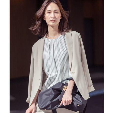 テーパードパンツと合わせて通勤スタイルに、デニムで大人カジュアルにもおすすめです。