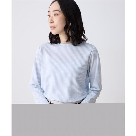 [型番:491251]軽やかに映える、サッカーギンガム立体感のあるサッカー素材に爽やかなギンガム柄をのせたプルオーバー。肌離れのよい生地感で着心地も軽く 大人カジュアルにもきれいめにも取り入れやすい一枚です。クロップドパンツで軽快にまとめたり、ロングカーディガンを羽織って奥行きのある着こなしもおすすめ。