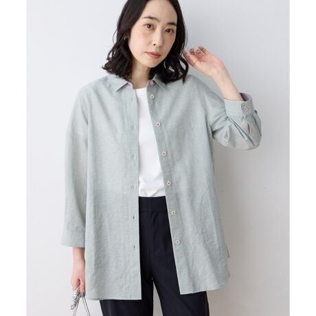 [型番:493078]細やかなチェック柄がやわらかい印象を与えるポケット付きシャツ。すっきりとしたシルエットで着回しやすく大人カジュアルにもきれいめにも取り入れやすい1枚です。ロングスカートでやさしくまとめたり羽織りとして軽やかに着こなすのもおすすめです。