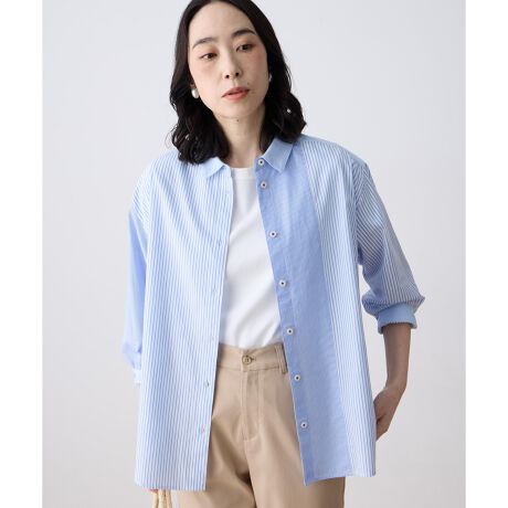 [型番:493085]情を楽しむパッチワークブラウス異なる柄や素材感を組み合わせたデザインがさりげなく映える一枚。ゆとりのあるシルエットで体のラインを拾いにくく大人カジュアルにもきれいめにも取り入れやすい仕上がりです。テーパードパンツで端正にまとめたりデニムを穿いて抜け感を出したりスカート合わせでやわらかな印象にも楽しめます。