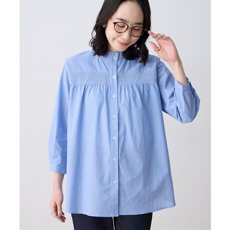 シャンブレー刺しゅうブラウス