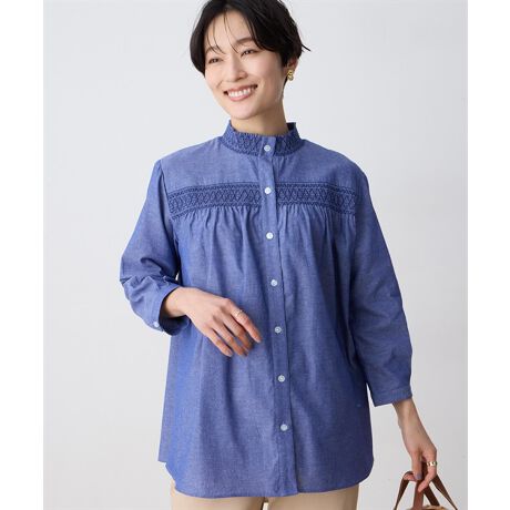 シャンブレー刺しゅうブラウス