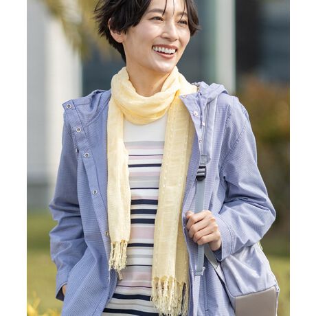 [型番:496178]やさしくなじむ、軽やかカラーシンプルで使いやすい無地デザインのストール。やわらかな風合いが、顔まわりにやさしい印象を与えます。軽やかな素材感で、季節の変わり目や冷房対策にも活躍。カジュアルコーデの差し色に、きれいめスタイルのアクセントにもおすすめです。