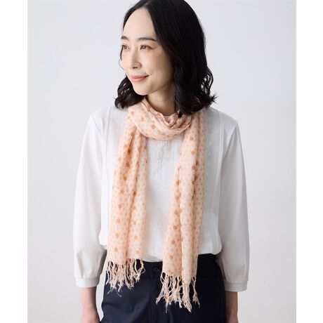 [型番:496179]軽やかに彩る、大人ドットやわらかな風合いが魅力のドット柄ストール。さりげない柄使いが、コーデに華やかさをプラスします。軽やかな素材感で、季節の変わり目や冷房対策にも活躍。シンプルなトップスに合わせてアクセントに、ワンピースと合わせて上品に仕上げるのもおすすめです。