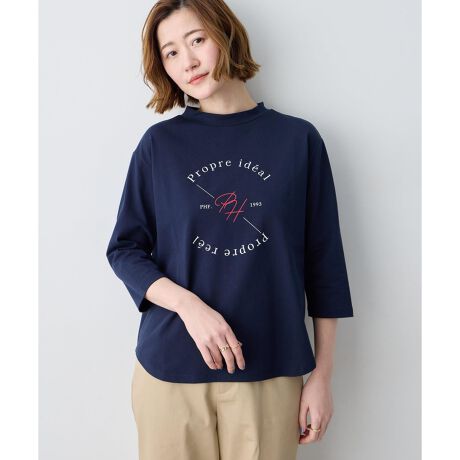 ロゴプリントモックネックTシャツ【オーガニックコットンブレンド】