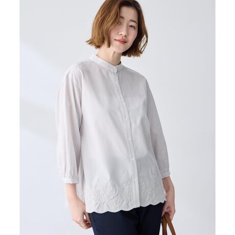 ストライプスカラップ刺しゅうブラウス