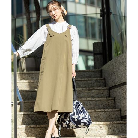 [型番:525245]ラフさと上品さを、ちょうどよく程よいワークテイストが魅力のカーゴ風ジャンパースカート。ゆとりのあるシルエットで、リラックス感のある着心地に仕上げました。肩ベルトは調整可能で、好みに合わせた着丈バランスが楽しめます。シャツを合わせて、程よくきちんと感のある着こなしもおすすめ。