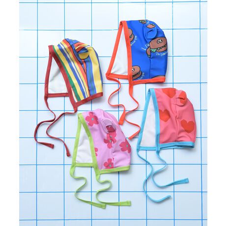 耳付きデザインが目を引く、ベビーらしいかわいさたっぷりのスイムキャップ。