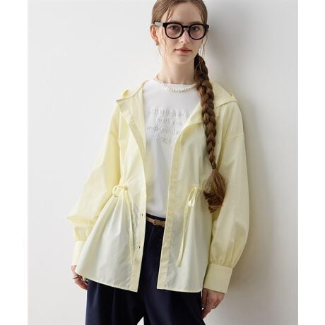 [型番:293251]こなれ感を演出するフード付きデザインスタイリングにカジュアルなムードを演出するフード付きシャツ。ウエスト部分にはドローコードが付いており、絞ることでシルエットの変化を楽しめます。カーブを描くような裾のラインがポイント。デニムやスラックスと合わせたコーディネートがおすすめです。