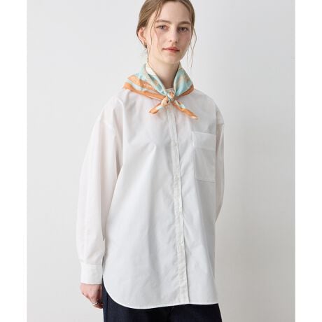 [型番:293262]持っているだけでスタイリングの幅が広がる1枚ノーカラーのデザインがすっきりとした首元を演出するシャツ。丸みのある裾のラインと、背面のセンターボックスプリーツのディテールがポイントです。1枚でトップスとして着用したり、お手持ちのニットとレイヤードした着こなしもおすすめ。寒い季節から春先まで幅広く活躍するアイテムです。
