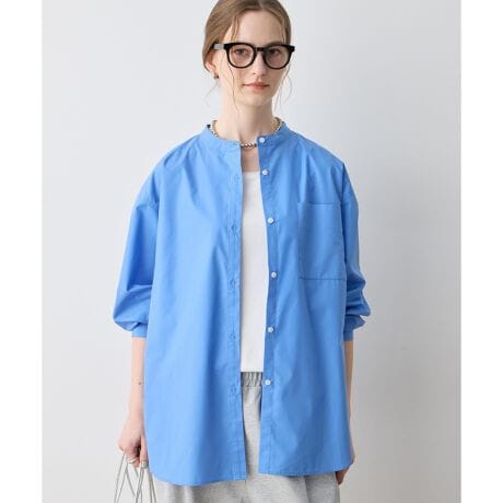 [型番:293262]持っているだけでスタイリングの幅が広がる1枚ノーカラーのデザインがすっきりとした首元を演出するシャツ。丸みのある裾のラインと、背面のセンターボックスプリーツのディテールがポイントです。1枚でトップスとして着用したり、お手持ちのニットとレイヤードした着こなしもおすすめ。寒い季節から春先まで幅広く活躍するアイテムです。