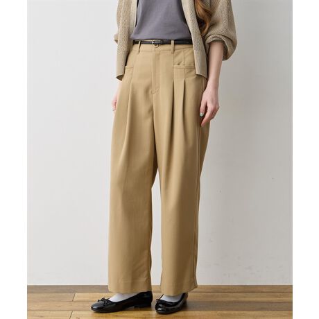 [型番:294141]タックでスタイリングに立体感をすとんとしたストレートシルエットが脚のラインをカバーするチノパンツ。フロントにはタックを施しており、スタイリングに上品さと立体感を演出します。バックのウエストゴム仕様がラクな穿き心地を実現。デイリーやオフィスカジュアルにも活躍するアイテムです。