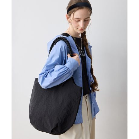 [型番:296091]編み込みハンドルで個性をプラス軽やかなナイロン素材で仕立てられたバッグ。ハンドル部分には編み込みデザインを採用し、シンプルになりすぎず個性的な印象をプラスします。開口部のマグネットボタンと、内側のポケットで機能性も充実。休日のお出かけや旅行シーンにも大活躍するアイテムです。