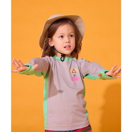 配色切り替えが目を引く、ポップな雰囲気のプルオーバーラッシュガード。