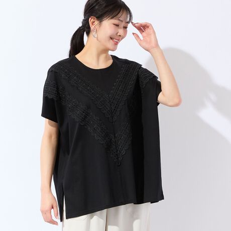 【洗える・3Lサイズあり】レースつきワイドプルオーバー